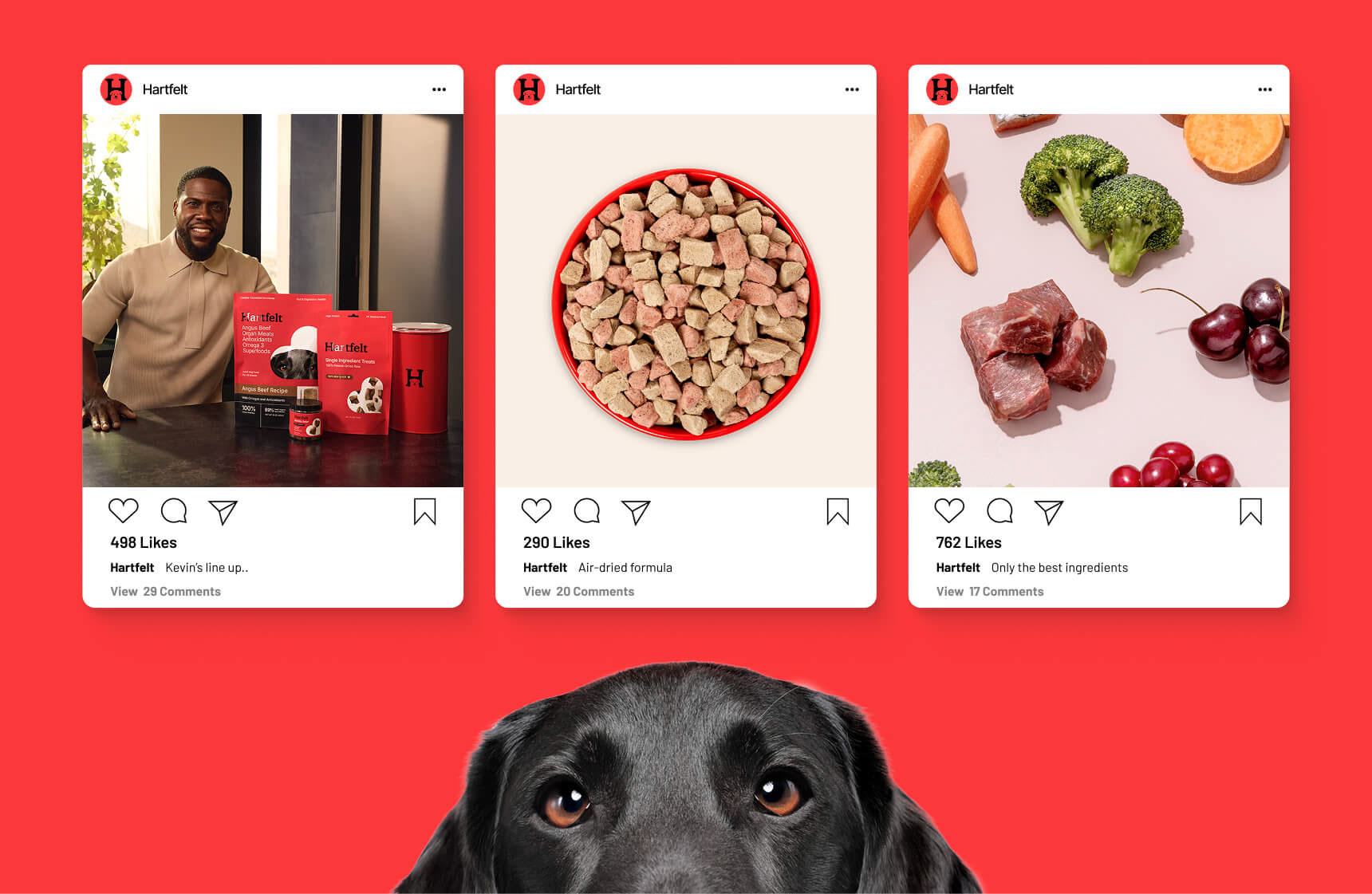 Hartfelt by Kevin Hart is a pet brand full of humor, heart, and quality nutrition. I designed packaging for food, treats, and supplements, along with the full branded website, all within the existing brand guidelines. We also worked with the photographer to bring the brand’s photo inspiration to life, creating vibrant, engaging imagery that captures Hartfelt’s personality.