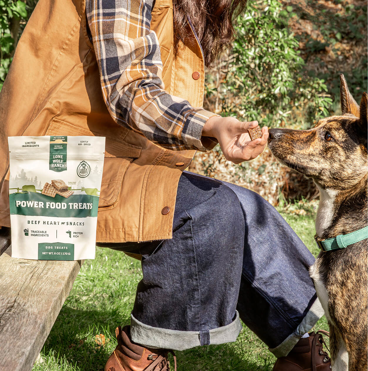 The packaging blends bold typography with a vintage national poster style, creating a timeless and nostalgic design that feels familiar and relatable. Each food bag keeps a consistent layout with the Lone Wolf logo and border always in place, while flavor changes are distinguished by color for quick recognition. For treats and supplements, we carry over the same visual system but use illustration elements more subtly rather than full scenic images. Flavor colors stay consistent across both food and treats, making it easy for customers to spot their dog’s favorites at a glance.
