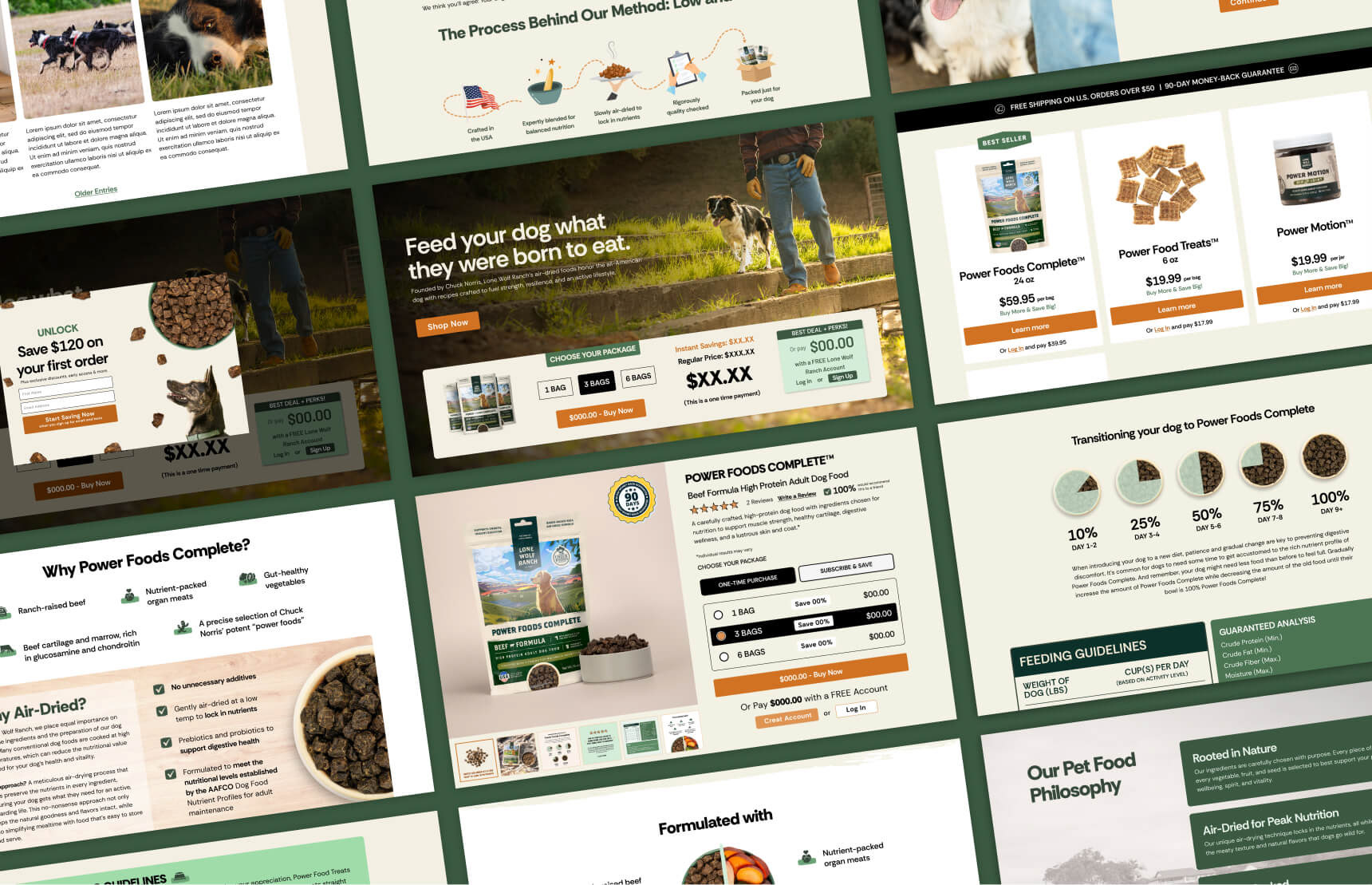 Lone Wolf Ranch Pets by Chuck Norris is a dog food brand that celebrates the hero within every dog, offering high-quality nutrition to help pets live strong, healthy lives. For this project, we created a full brand identity system, packaging, and website. Named after Chuck Norris’ real ranch, Lone Wolf embraces a bold, rustic aesthetic inspired by the rugged landscapes and hardworking spirit of ranch life. Our goal was to bring that environment to the everyday consumer—crafting a brand that feels powerful and trustworthy.